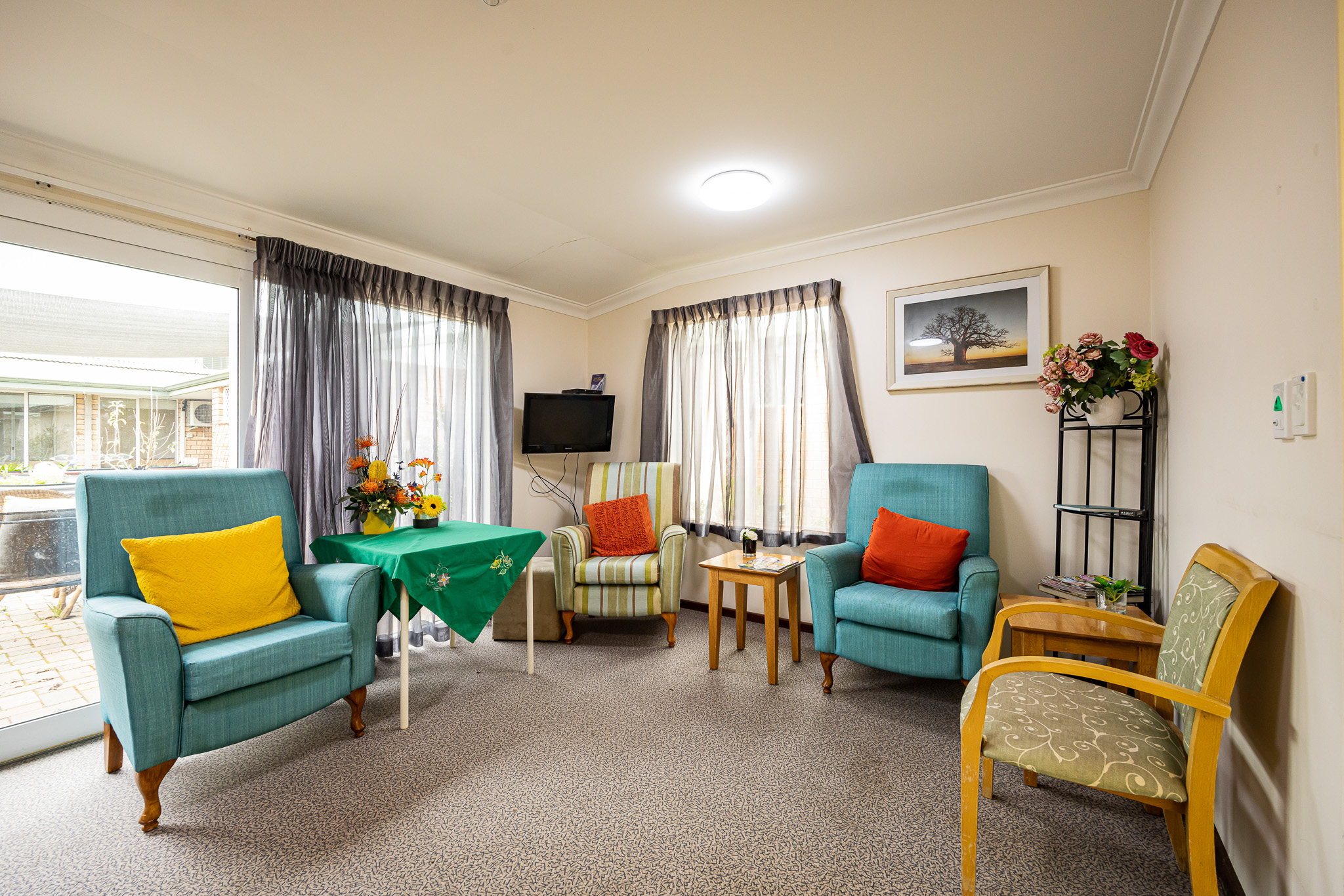 Split into two wings, including a dementia-enabled care wing, each of the 45 extra-large rooms boast their own private balcony or patio which residents and their families are free to personalise. Connection to the outdoors is an ongoing theme through the home, with large gardens and courtyards, including space for the chickens, budgies, finches and resident cat.Each wing has its own dining space, activity room and lounges for residents to enjoy and relax in.The home has an active social calendar of events and activities, which residents can partake in as much or as little as they choose. Residents can also choose to join bus outings, including reminiscence drives throughout the district.The team pride themselves on the close relationships built between long-term staff, residents, their families, and the local community.Juniper The Residency allows residents to continue living close to family and friends and within the community they love.